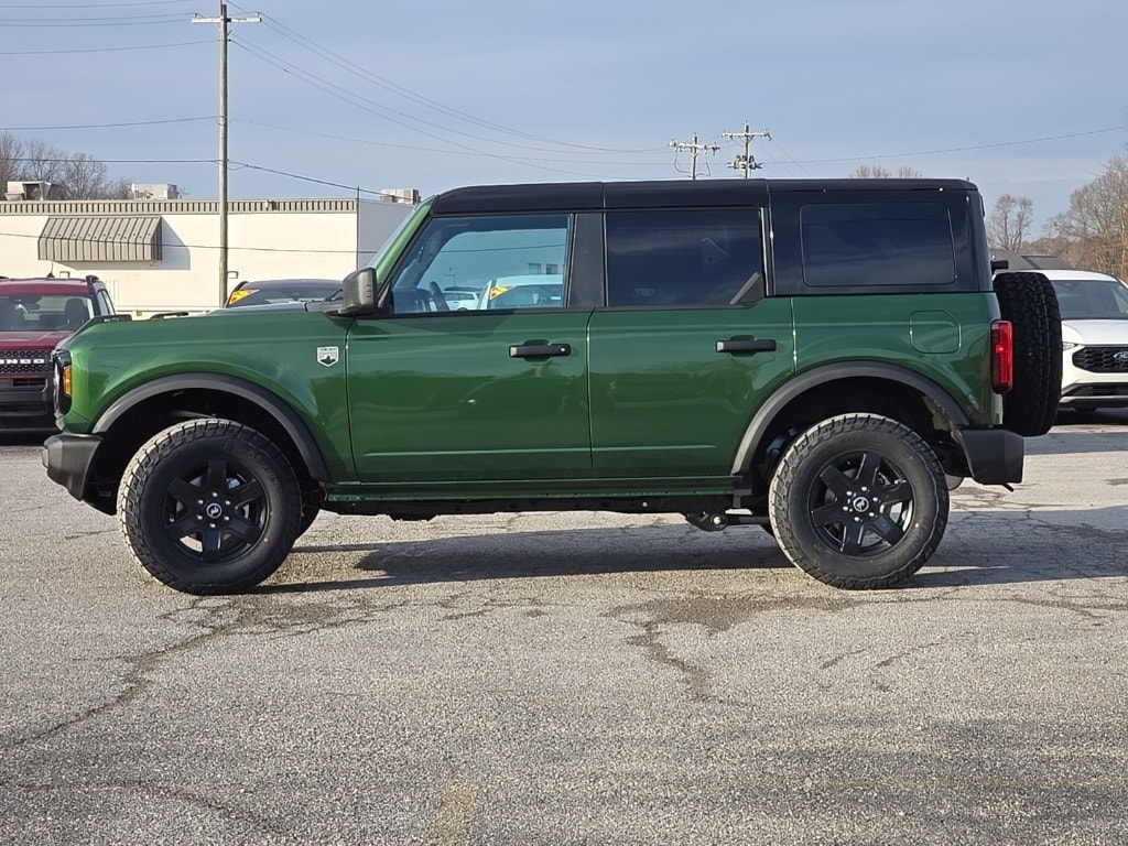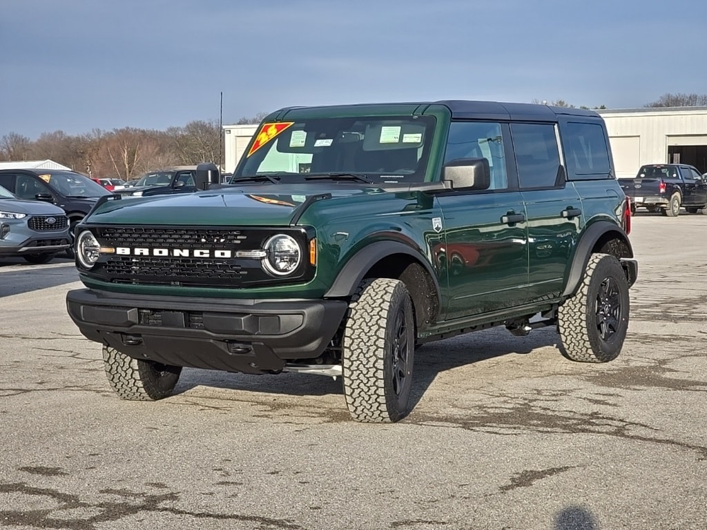 Eruption Green Metallic 2025 Ford Bronco Big Bend 4WD 10-Speed Automatic 2.3L EcoBoost I-4 Black Appearance Package, Black Molded-In-Color Door Handles, Black Molded-In-Color Fender Flares, Black Molded-In-Color Sideview Mirror Caps, Black-Painted Molded-In-Color Grille, Equipment Group 221A Standard Package.