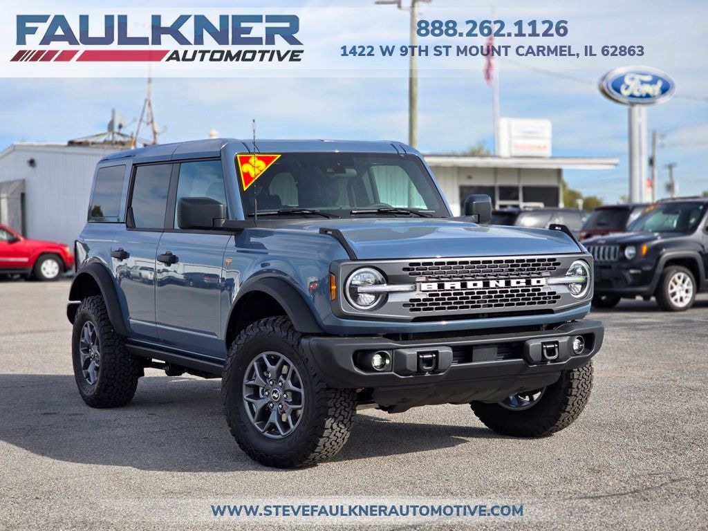 Azure Gray Metallic Tri-Coat 2025 Ford Bronco Badlands 4WD 10-Speed Automatic 2.7L EcoBoost V6 2-Door Intelligent Access w/Lock/Unlock, Ambient Footwell Lighting, Connected Navigation, Dr & Pass Illuminated Sliding Visor Vanity Mirrors, Dual Smart Charging USB Ports, Dual-Zone Electronic Automatic Temperature Control, Equipment Group 332A Mid Package, Front Row Heated Seats, Power Outlet - Back Side of Center Floor Console, Rear Parking Sensors.