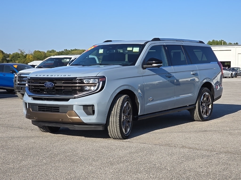 Glacier Gray Metallic TriCoat 2025 Ford Expedition Max King Ranch 4WD 10-Speed Automatic EcoBoost 3.5L V6 GTDi DOHC 24V Twin Turbocharged BlueCruise Equipped (1-Year Plan), Connectivity Package (One-Time Purchase), Equipment Group 400A Standard Package, Navigation System, Power moonroof: Vista Roof, Radio: B&O Unleashed Sound System by Bang & Olufsen, SiriusXM w/360L.