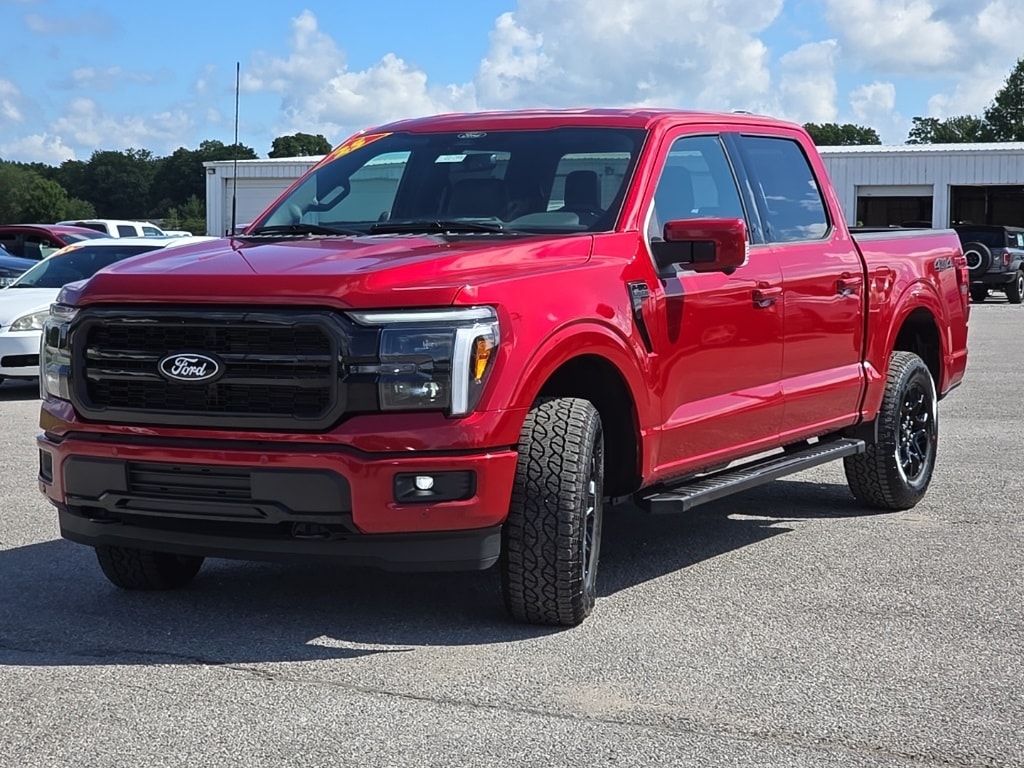 Rapid Red Metallic Tinted Clearcoat 2025 Ford F-150 Lariat 4WD 10-Speed Automatic 5.0L V8 4WD, ActiveX Trimmed Bucket Seats (B), Black Exterior Badging, Black Grille, Black Taillamp Bezels, Body-Color Front & Rear Bumpers, Body-Color Skull Caps & Door Handles, Console Worksurface, Dark Interior Appliques, Equipment Group 500A Standard, Gray Box Side Decal, GVWR: 7,100 lbs Payload Package, Lariat Black Appearance Package, Matte Black Tailgate F-150 Decal, Mobile Office Package, Navigation system: Connected Navigation, Partitioned Lockable Rear Storage, Wireless Charging.