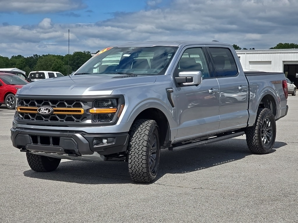 Iconic Silver Metallic 2025 Ford F-150 Tremor 4WD 10-Speed Automatic 5.0L V8 4WD, 2nd Row Heated Seats, 4 Pickup Box Tie-Down Plates, Ambient Lighting, Auto-Dimming Rear-View Mirror, Bed Utility Package, Console Worksurface, Electronic Locking w/3.73 Axle Ratio, Equipment Group 402A High, Front Axle w/Torsen Differential, GVWR: 7,100 lbs Payload Package, Heads-Up Display, Heated Steering Wheel, Integrated Trailer Brake Controller, LED Box Lighting, LED Taillamps, Media Bin Door, Mobile Office Package, Modular Front Bumper & Carbon Black Rear Bumper, Navigation system: Connected Navigation, Partitioned Lockable Rear Storage, Power Glass Heated Sideview Mirrors, Power Tailgate, Power-Adjustable Pedals w/Memory, Premium Wrapped Steering Wheel, Radio: B&O Unleashed Sound System by Bang & Olufsen, Rain-Sensing Wipers, Tow/Haul Package, Two-Speed Automatic AWD w/Mechanical Locking 4WD, Unique Tremor Leather-Trimmed Bucket Seats, Universal Garage Door Opener, Wireless Charging.